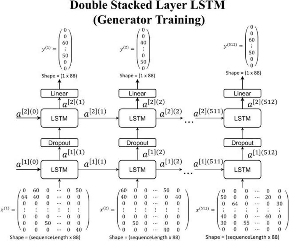 Double stacked layer long short-term memory (LSTM) model for generator training.