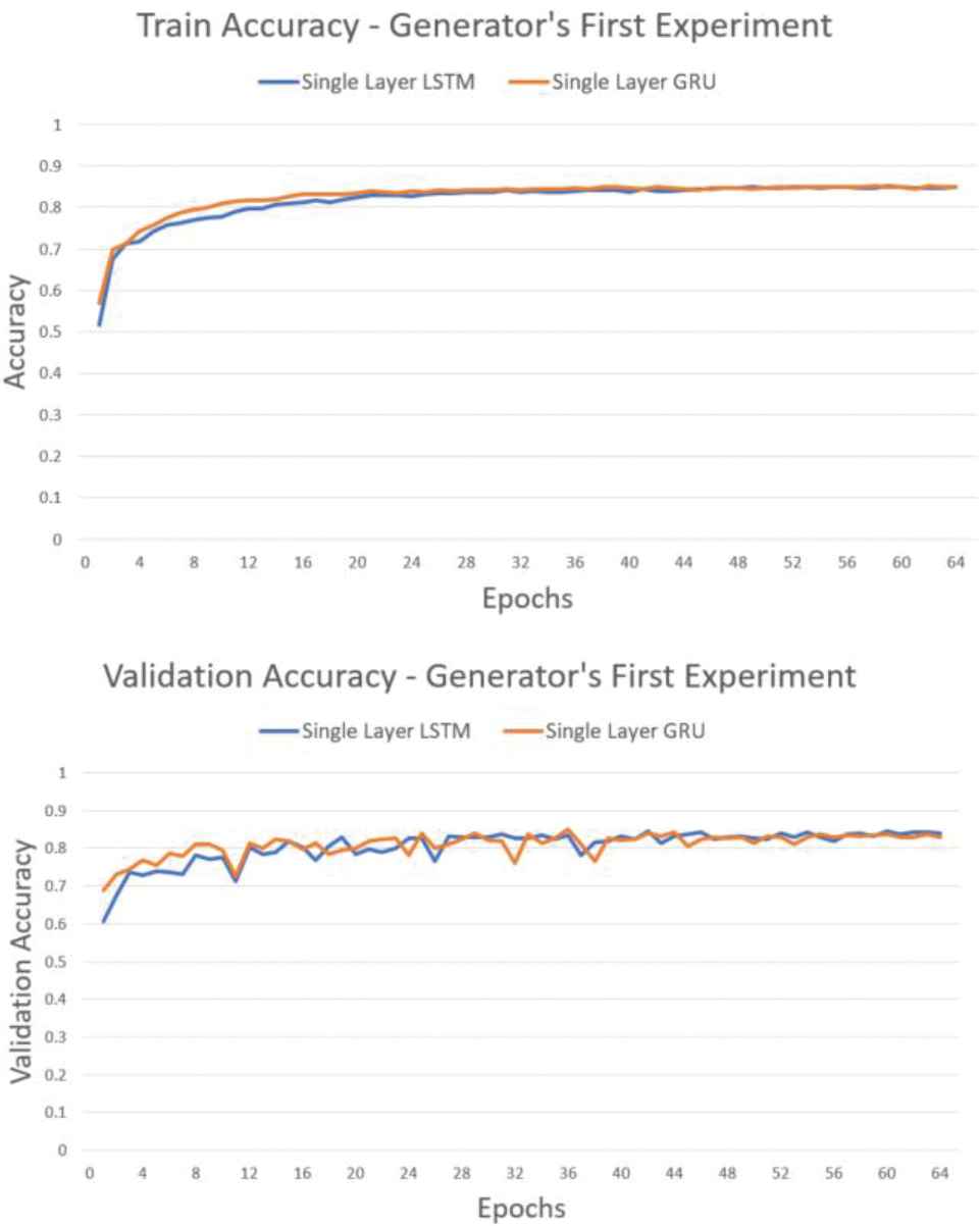 Each training and validation accuracy of evaluator showed in Table 7. It was clear that the LSTM has failed to learn the data input hence has a lower training accuracy than the validation.