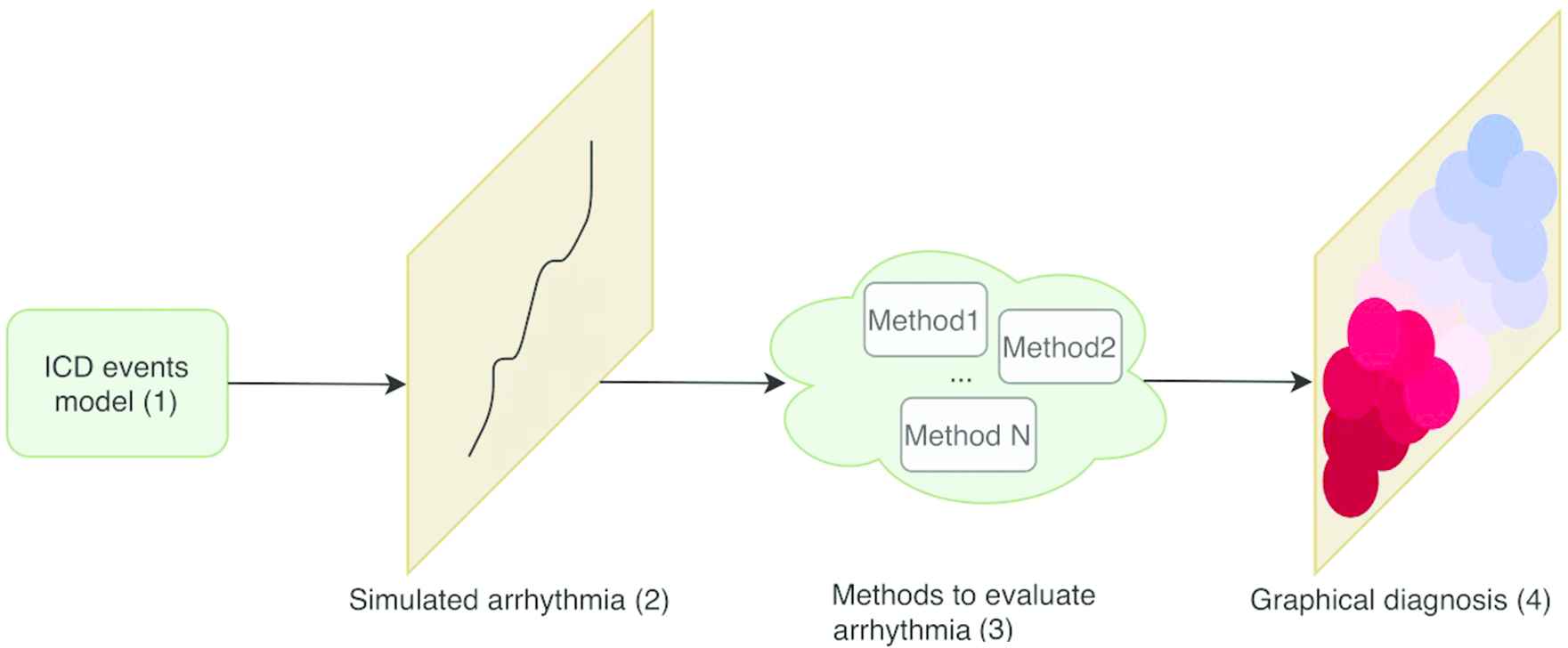The generated data is used for training different methods(3) to evaluate intracardiac records. Among these methods, further research is done to obtain a time series classifier based on adversarial training.