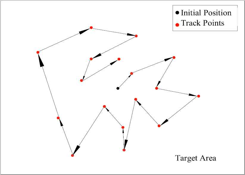 • Step 11. The track points for refine searching in the target area are generated by the normal distribution model.
