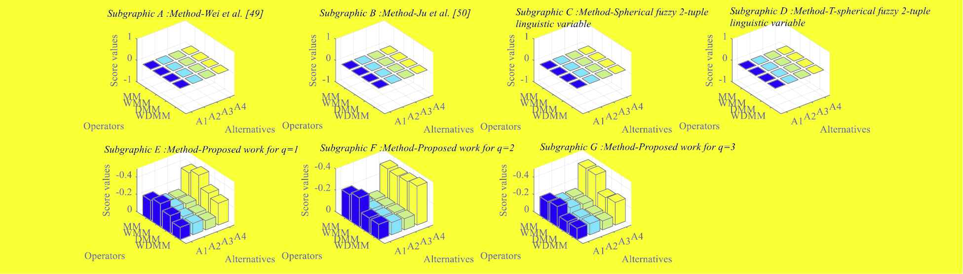 The explored MM operator and DMM operator using the novel concept of CTSF2-TLSs are more powerful and more superior than existing operators which are discussed in Tables 3, 5, and 7, based on the complex picture fuzzy 2-tuple linguistic information and complex spherical fuzzy 2-tuple linguistic information. So the established approaches in this manuscript is more reliable and more efficient than existing methods [48,49].