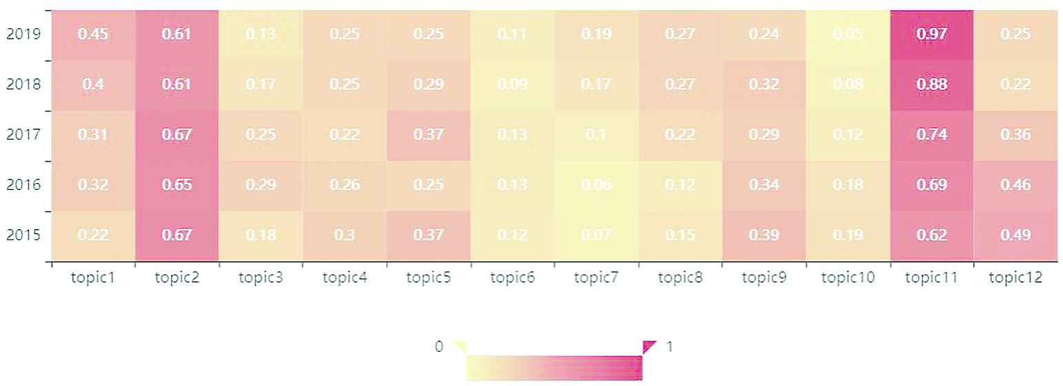 A Heatmap of EHRs-related topics from 2015 to 2019 is shown in Figure 8.