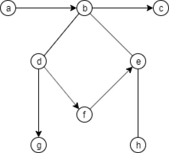 In Figure 6, the node a has one follower, namely b. The node b has three followers, namely d,e,c and one precursor as a.