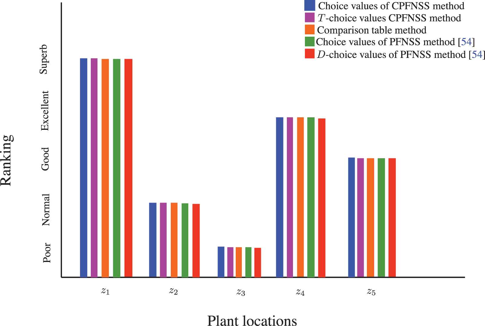 In this section, a comparative analysis of our proposed techniques with existing MCDM techniques, namely, choice values of PFNSS and D-choice values of PFNSS is presented. We illustrate the authenticity and validity of our presented methods by evaluating the numerical example named “Selection of plant location” using choice values of PFNSS and D-choice values of PFNSS techniques.