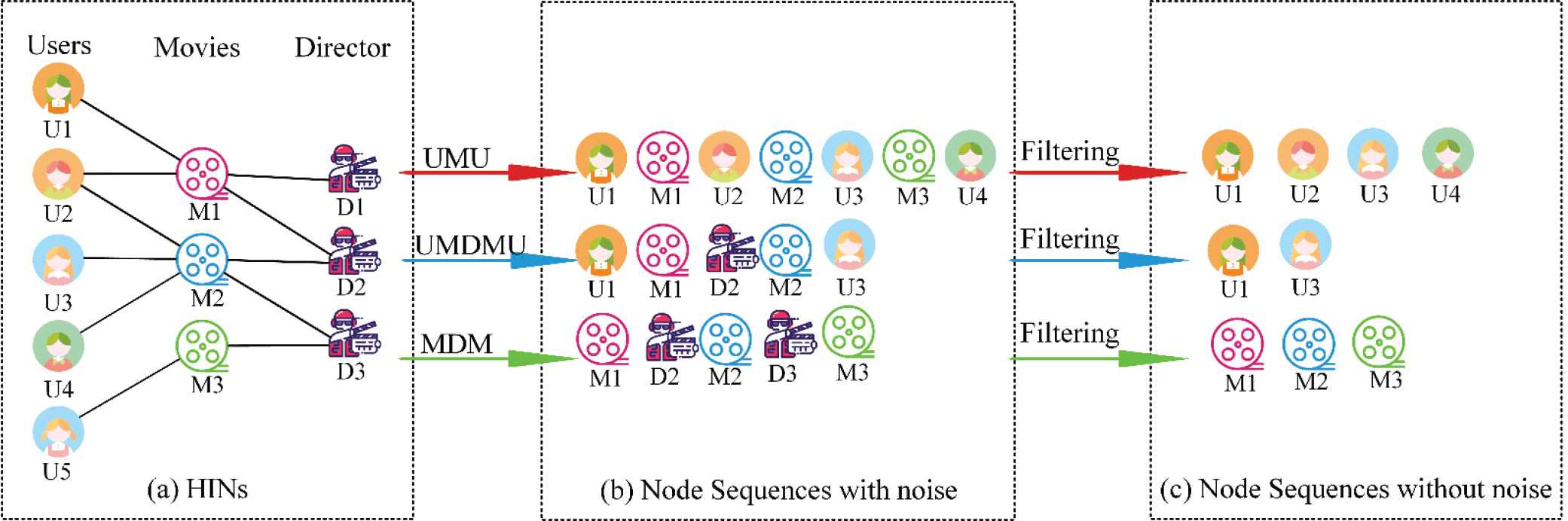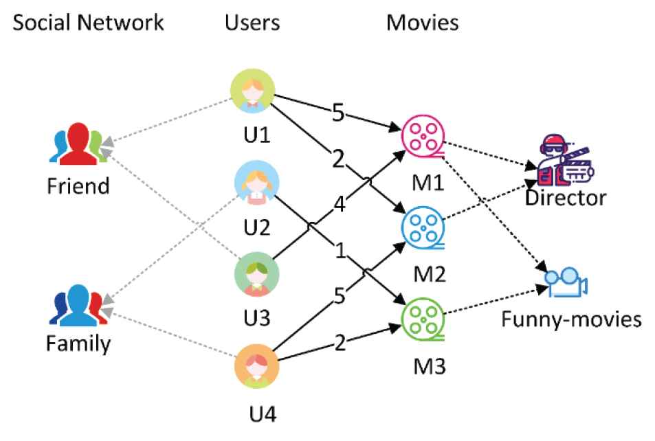 HIN is a special information network, as shown in Figure 3. It contains multiple types of nodes and multiple types of links.
