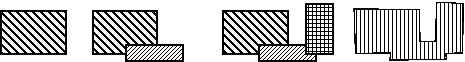 As practice shows [19], it is advisable to associate a reasonable course of analysis with the help of GIS with some patterns. Since we are talking about spatial analysis as a process, one can draw an analogy with time series analysis. Let's call these patterns level, trend, and rhythm. For spatial analysis, the “level” pattern can be defined as a spatiotemporal semantic area in which the analysis process takes place. Figure 1 schematically shows an example of a region constructed as a hull of a set of fragments. Each fragment is a spatial area with a certain combination of semantic layers. This is shown with different shading. The level is represented in the GIS by an area on the map with a set of all layers used in the session.