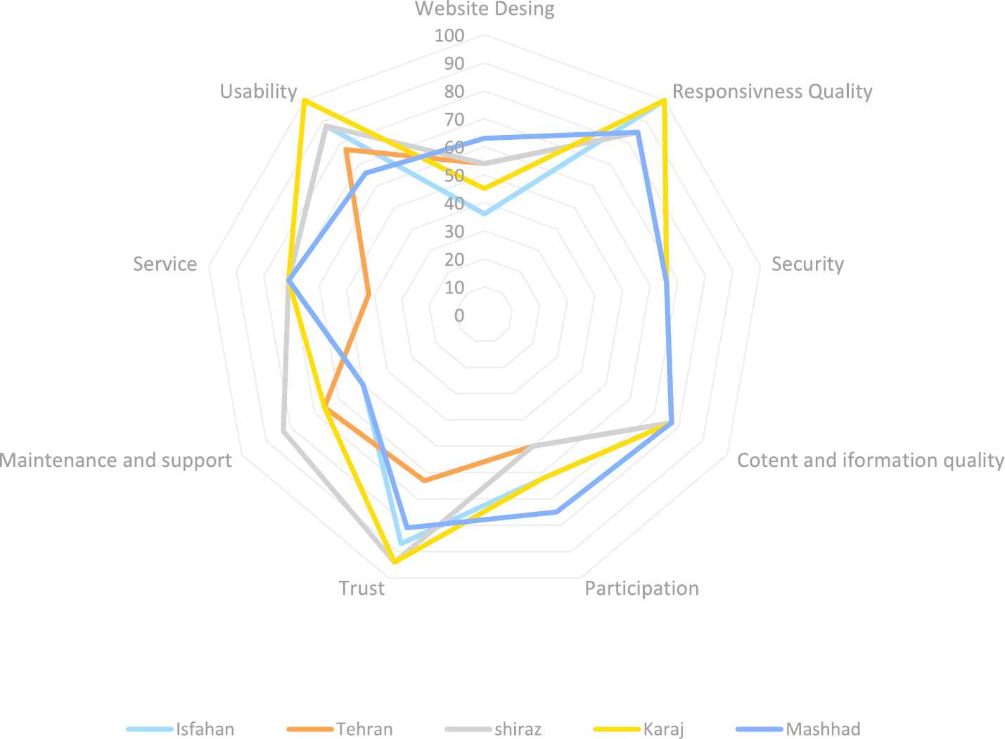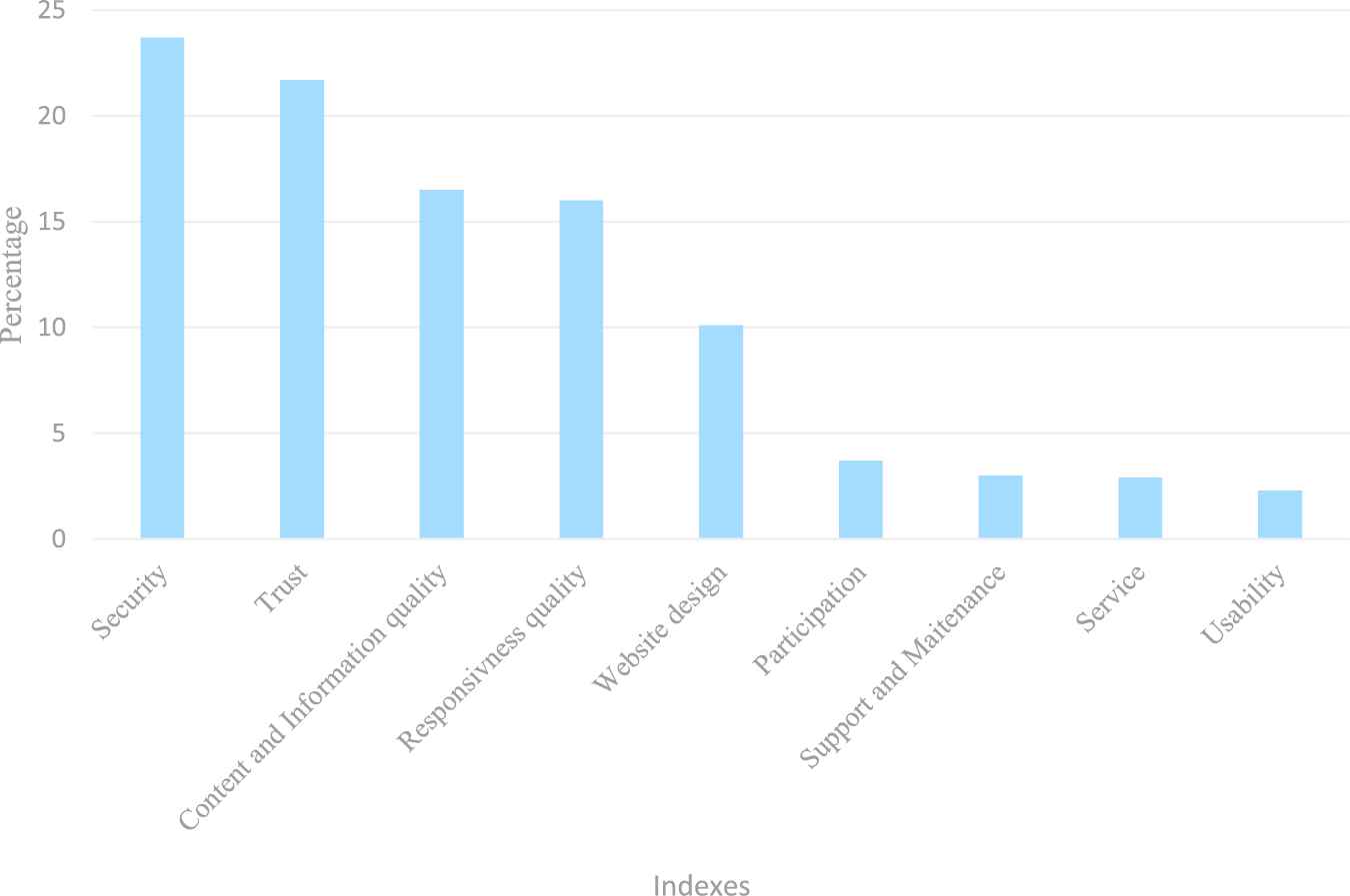 Various studies have been carried out to evaluate e-government websites. Each model considered different aspects of e-government websites considering different indexes. Each of these studies have been applied to assess e-government websites in different countries or continents. Having meticulously reviewed e-government websites' research over the past ten years, the most important indexes were extracted as “website design,” “responsiveness quality,” “security,” “trust,” “content information quality,” “participation,” “maintenance and support,” “service” and “usability” [1,6,15, 1719,24,25]. Taking these indexes into account, wider dimensions of e-government websites are assessed in comparison with previous studies. Definition of each indexes are presented as follows:
