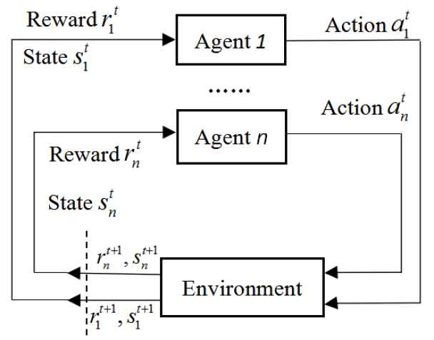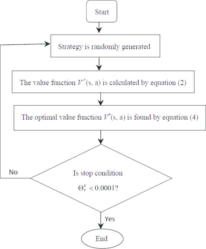 step 2: Each agent's the value function Vt(s,a) is calculated by Equation (2), and the optimal strategy V*(s,a) is calculated by formula (4).