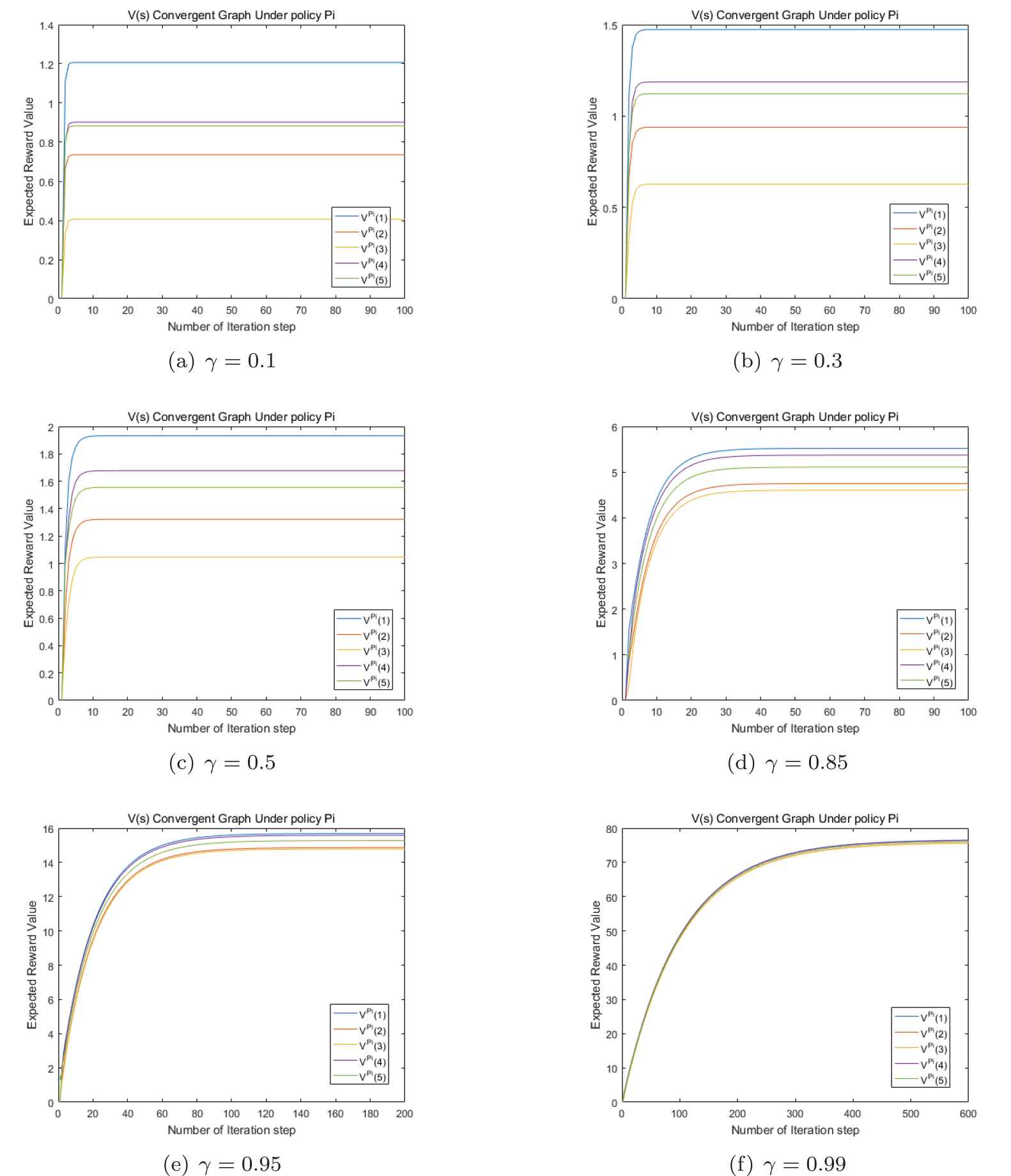Meanwhile, V0=[0,0,0,0,0]T denotes initial value function vector, where T represents the transposed operator, the value function's convergence property under different discount factor is shown Figure 2.