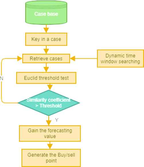 • Third, and more important, in the wake of false alarm that may be ignited by FLANN system, this study put into force case-based dynamic window (CBDW) and CBR techniques in order to have an additional view of confirming the action of buying or selling.