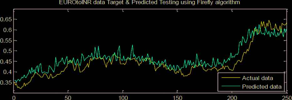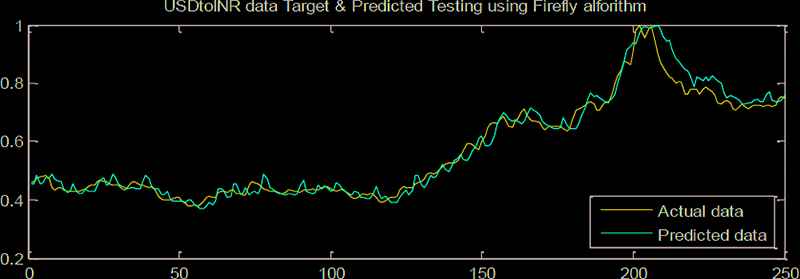 Testing results of USD to INR currency exchange data using Firefly algorithm.
