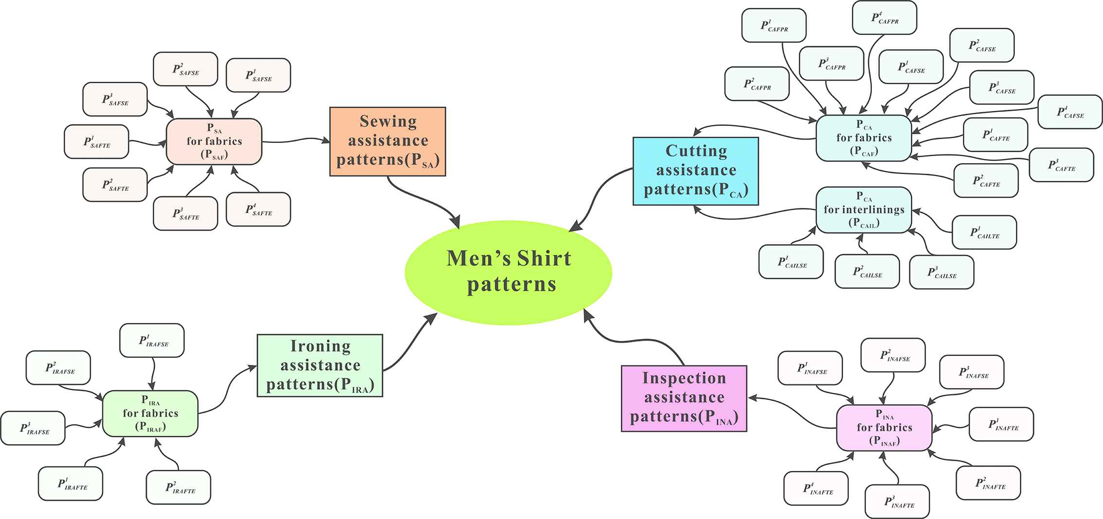 Step 1: A specific sample garment (men's shirt/leggings) was present to the panelists. A set of functional categories for the GPs, such as CAP, sewing assistance patterns (SAPs) and ironing assistance patterns (IRAPs), etc., was defined by the panelists through a form of “round table” discussion.