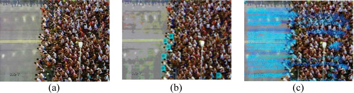 Xing Hu et al. [20] proposed a LNND descriptor to represent the video event for anomaly detection in crowded scenes. Si Wu et al. [19] proposed a Bayesian framework for escape detection by directly modeling crowd motion in both the presence and absence of escape events. Specifically, they introduced the concepts of potential destinations and divergent centers to characterize crowd motion in the above two cases respectively,and construct the corresponding class-conditional probability density functions of optical flow. Chunyu Chen et al. [18] proposed an algorithm based on the acceleration feature to detect anomalous crowd behaviors in video surveillance systems. Different from the previous work that uses independent local feature, the algorithm explores the global moving relation between the current behavior state andthe previous behavior state. Weixin Li et al. [17] have proposed an anomaly detector that spans time, space, and spatial scale, using a joint representation of video appearance and dynamics and globally consistent inference. They modeled crowded scenes with a hierarchy of MDT models, equated temporal anomalies to background subtraction, spatial anomalies to discriminant saliency, and integrated anomaly scores across time, space, and scale with a CRF. Shobhit Saxenaet al. [15] have discussed the crowd feature selection and extraction and proposed a multiple-frame feature point detection and tracking based on the KLT tracker.