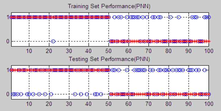 ANN is one operational model that is constituted by plenty of interconnected nodes. Every node stands for a specific activation function, and every two nodes are connected by weighted method. The different type of ANN mainly depends on different connection methods, different weight values and different activation functions. ANN includes the perceptron neural network, the BP neural network and so on. Among them, the PNN model is one classical ANN model. It is one multilayer neural network in which every layer could be respectively operated in parallel. But the PNN model is different from the universal ANN model. It has the structure of four layers and adopts activation functions which derive from statistical approach instead of general S-type activation functions. Hence, the Bayesian classification and Parzen window theorem are the basic method for this model. One example is to explain the Bayesian classification theorem. For one classification problem, x(m) = [x1,x2,…,xn] (m is number of samples, n is spatial dimension) are input vectors, which belong to several different classes (1,2,…,k). The prior probability that a sample belongs to the kth class is hk, and the cost that a sample is misclassified is ck, and the probability density function is fk(x). Bayesian classification theorem is expressed as follows: