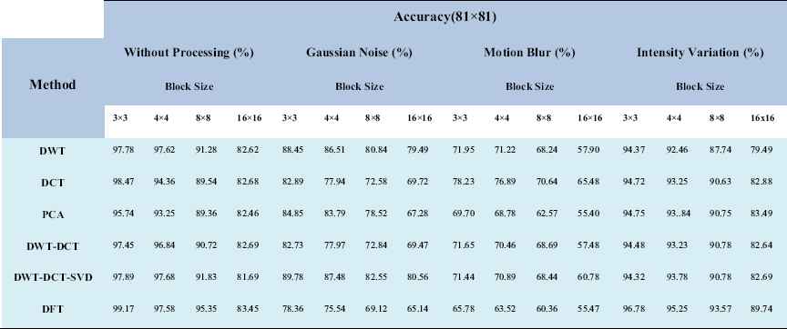 DWT+DCT+SVD 0.992 0.994 0.026 0.987 0.988 0.028