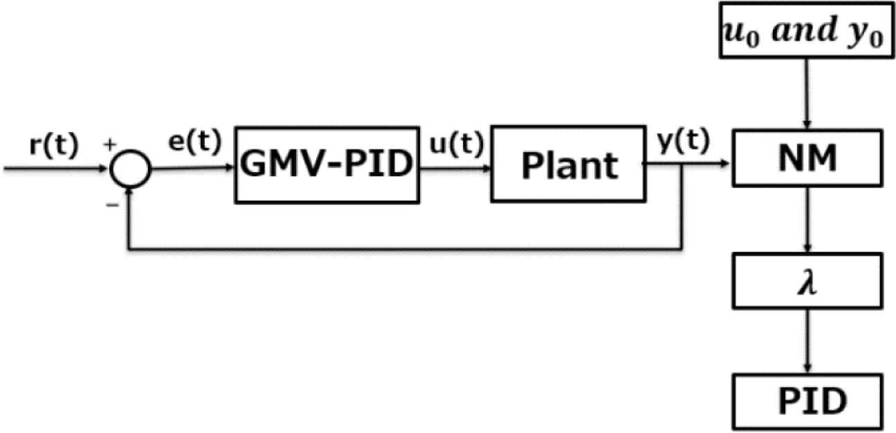 This paper gives the details of the proposed method which describes a design scheme for data-driven GMV-PID controller which can obtain GMV control parameters by applying the NM method and the estimation of closed-loop response based on PID controller. In Figure 1, an adjustable parameter λ is included in the GMV-PID controller, therefore PID parameters are calculated by simply changing λ. Using the method of estimation of closed-loop response to predict new output, then the application of NM method can optimize the calculation of the most suitable λ according to the predict output and get optimal PID parameters without any model of the process.