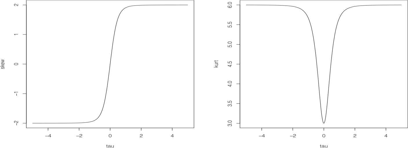 The skewness and kurtosis of X~SL(μ,σ,λ) are respectively given by