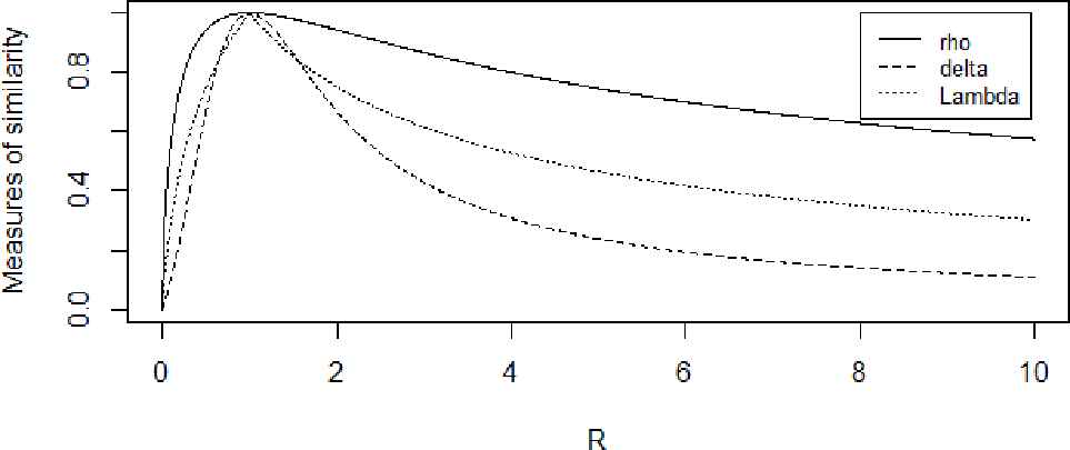 Figure 2 shows curves of the three overlap measures according to R All three measures are monotone for all R > 0.