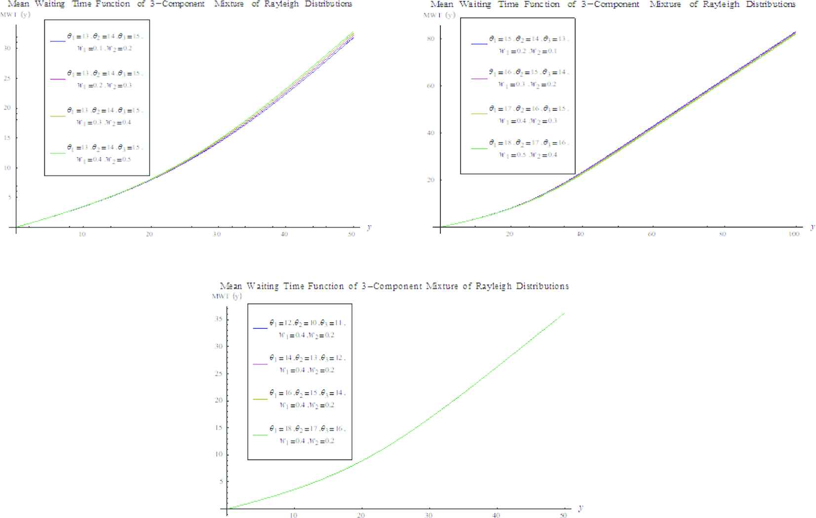 The graphical presentation of the MWT function for proposed mixture distributions is shown as follows: